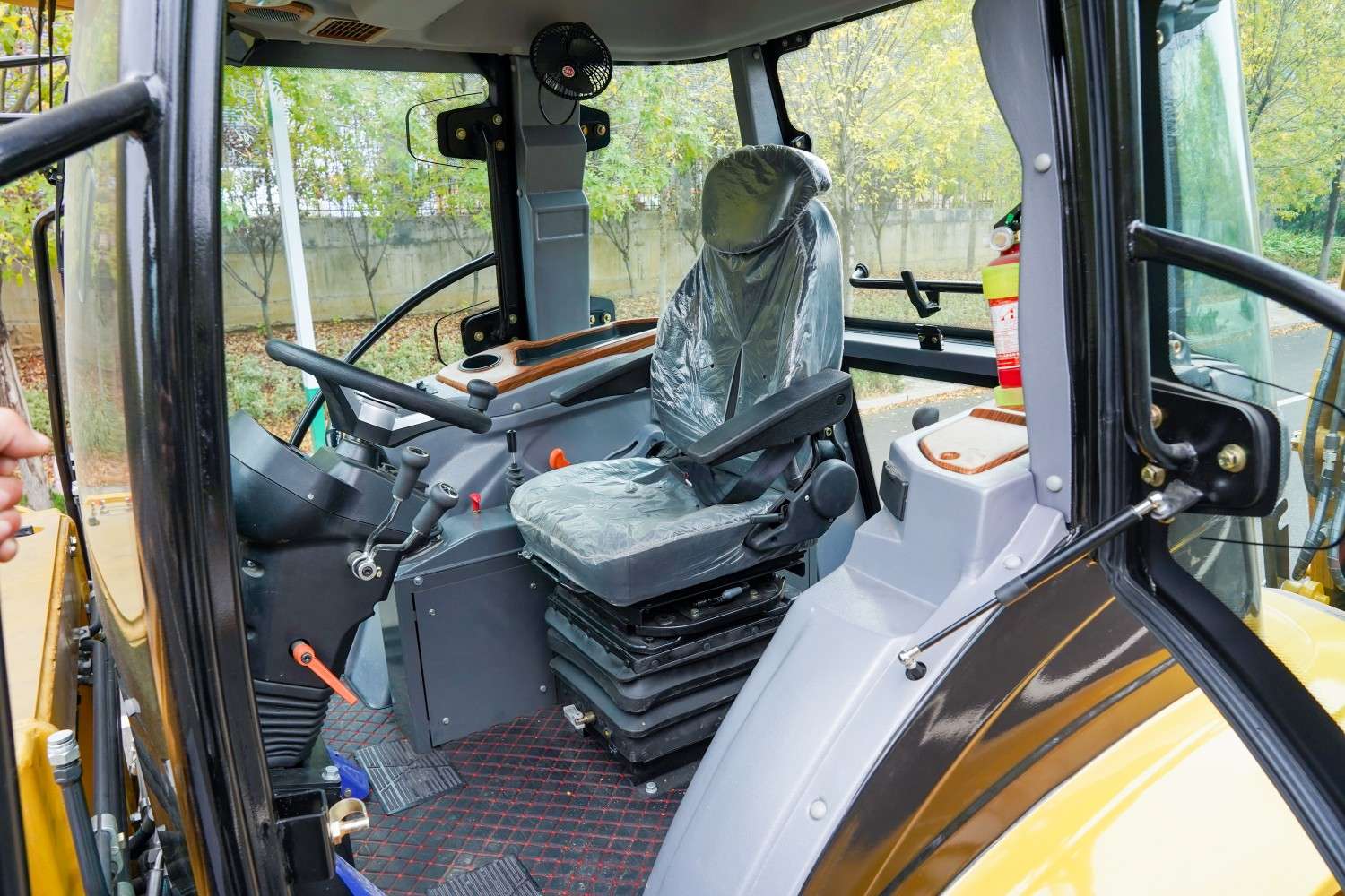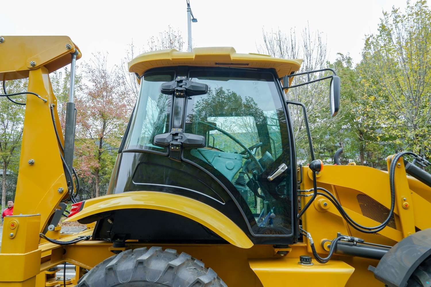 | Standard configuration: front shovel with bucket, rear excavator with bucket, luxury with interior cab/fan/LED light/large reflection/window hammer/fire extinguisher/sliding window/sunroof, warm air, luxury adjustable rotating seat, adjustable instrument panel, LCD display screen, hydraulic pilot operation, Yuchai 85KW engine, 14-17.5 vacuum front tires, 19.5L-24 vacuum rear tires, special 280 integral dual high and low speed transmission, front wheel Yunyu steering drive axle, four-wheel drive, A-shaped support legs. | |